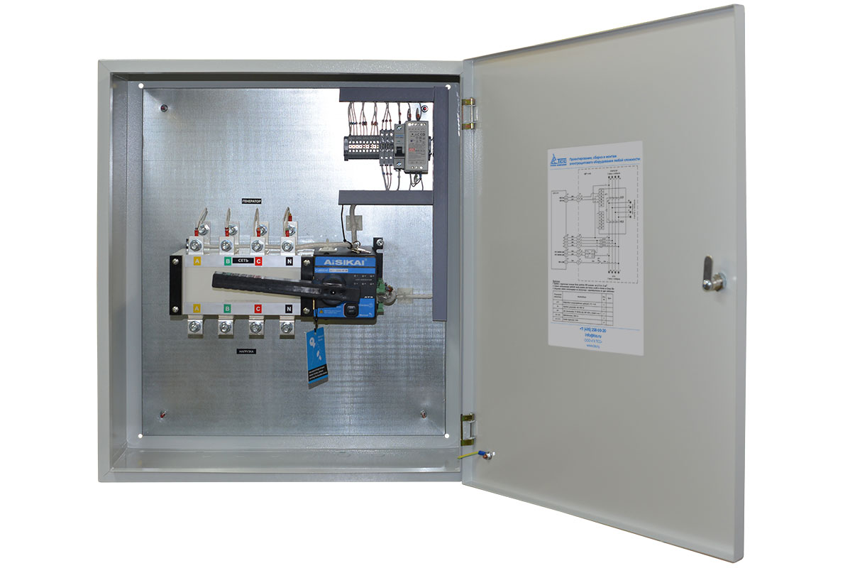 Автоматический ввод резерва (АВР) применяют для генераторных установок, которые используются в качестве резервного источника электрической энергии. Основной функцией АВР является коммутация источников электроэнергии с потребителями энергии. АВР имеет минимум два ввода: 1 ввод (основной) – ввод от основного источника электроэнергии, 2 ввод (резервный) – ввод от резервного источника электроэнергии. Вводы взаимно блокируют друг друга – один из них замкнут, другой разомкнут. В нормальном положении основной ввод замкнут и от постоянного источника (как правило это линии электропередачи) происходит снабжение потребителей. В случае попадания электропитания (или выхода качества электроэнергии за рамки установленных значений) система автоматики производит запуск генераторной установки. После выхода установки на рабочий режим, АВР производит коммутацию потребителя электроэнергии на резервный источник – генераторную установку. При появлении электроэнергии надлежащего качества на основном вводе, АВР (после установленной временной задержки) производит обратную коммутацию потребителя электроэнергии на основной источник энергии. Система автоматики производит выключение генераторной установки. Все элементы АВР размещается в металлическом корпусе. АВР является отдельным, самостоятельным устройством, не являющимся составной частью генераторной установки. Если генераторная установка изначально не имела АВР, дооборудование установки можно произвести в любое время.