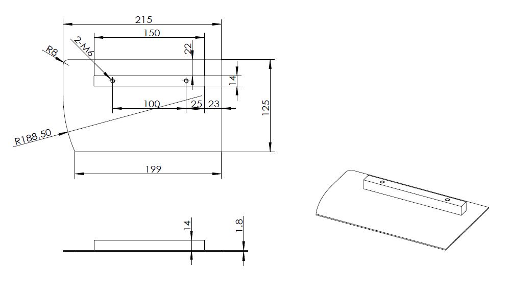 Лопасти для TSS DMR600 (к-т из 4 лопастей). Вес 1 шт.=0,46 кг Вес комплекта 1,5 Лопасть в сборе : 1)Пластина :длина =211,5 мм,ширина =128 мм 2)Планка с отверстиями (2) М6х1,0 межцентровое = 100 мм.